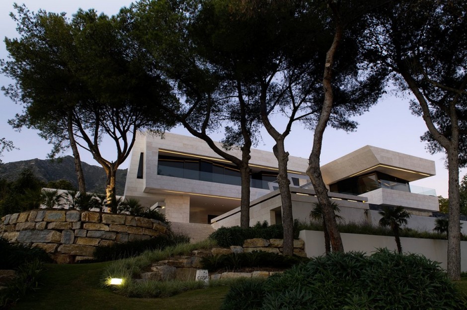 A-cero presents one of its last projects in single family houses in Marbella. The property is placed on the outskirts of Puerto Banús, in one of the most famous and exclusive developments in the Sun Coast. This development is located on one side of a mountain but very close to the coast, with plenty of Mediterranean vegetation.The plot where the project is located has a notorious slope that goes down to the South from the street access. This fact would determinate the design to adapt the house to the environment and achieve excellent views of the Mediterranean Sea. The possibilities of the plot and the wishes of the property appear in the execution of this huge project.